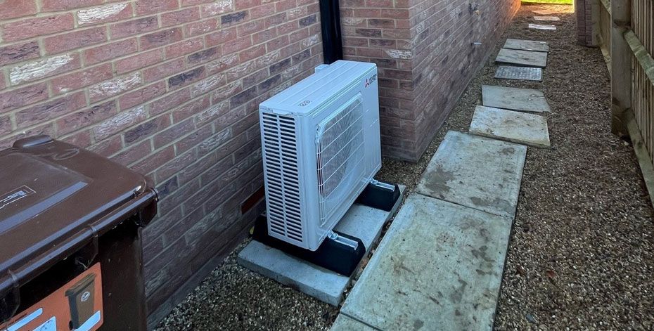 The condenser was placed in a small alcove at the side of the property and that allowed us to place the trucking hiding the pipework alongside the guttering making the install look as neat and tidy as possible.